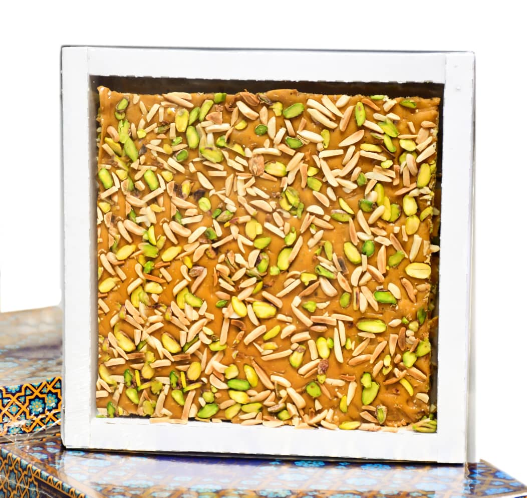 **ترکیبات ممتاز:** استفاده از عسل طبیعی، زعفران خالص اعلا و روغنهای حیوانی مرغوب، عطری جادویی به این سوهان بخشیده است.